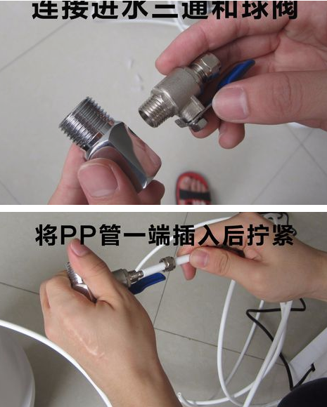 將儲(chǔ)水箱和反滲透單元放置在水槽下面。該裝置也可以安裝在墻上,或放在安全的地方。請(qǐng)記住反滲透裝置和儲(chǔ)水罐在安裝時(shí)要注意水平位置