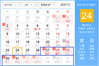 金猴獻瑞辭舊歲,雄雞唱曉賀新春,春節(jié)將至,根據(jù)國務(wù)院辦公廳公布的《2017年節(jié)假日安排的通知》的有關(guān)規(guī)定,結(jié)合公司實際情況,經(jīng)領(lǐng)導(dǎo)研究決定,現(xiàn)將鄭州貫奧儀器儀表有限公司2017年春節(jié)放假具體事項通知如下: 一、放假時間:2017年1月25日(農(nóng)歷臘月二十八)至2017年…