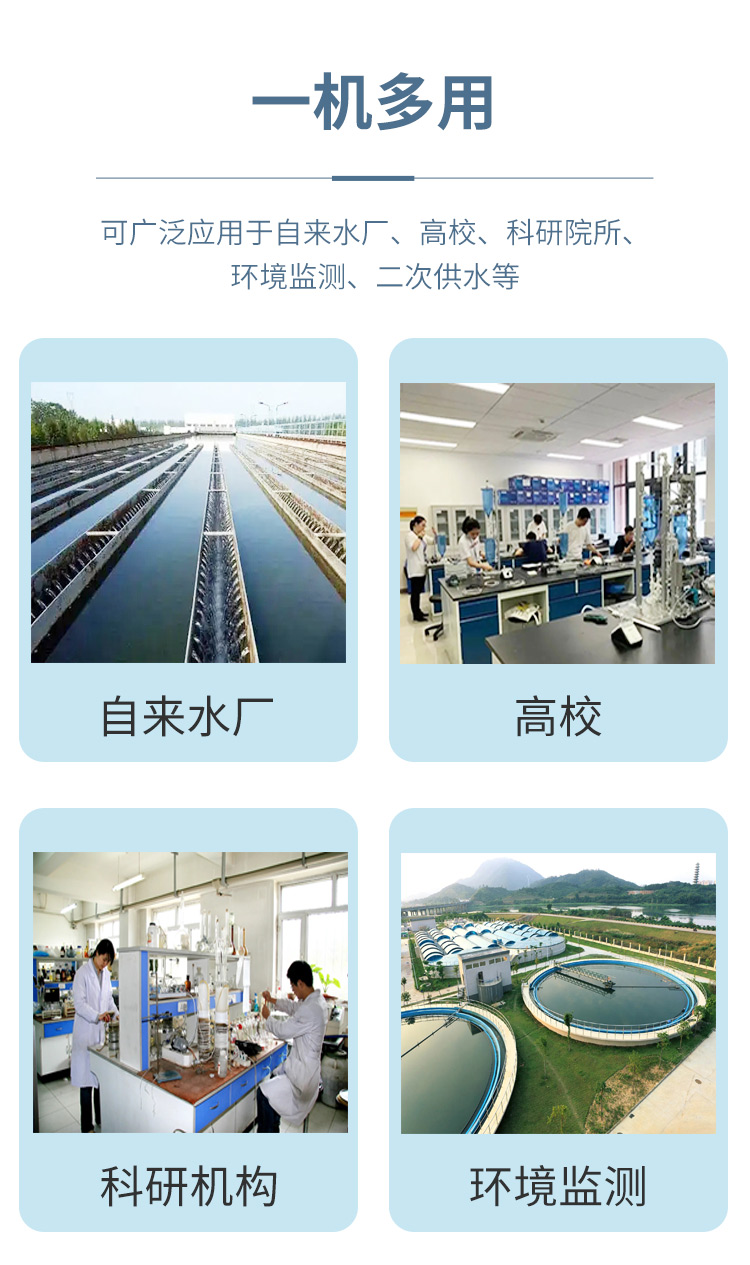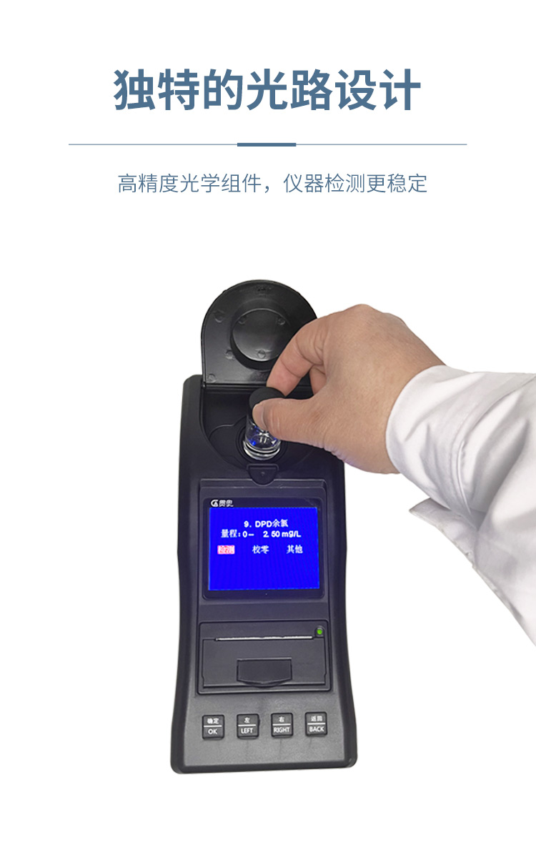 本儀器可用于測(cè)定飲用水中的消毒劑指標(biāo)余氯、總氯、二氧化氯等參數(shù)。本儀器可廣泛用于水廠、食品、化工、冶金、環(huán)保及制藥等行業(yè),是常用的戶外及實(shí)驗(yàn)室常用儀器。
